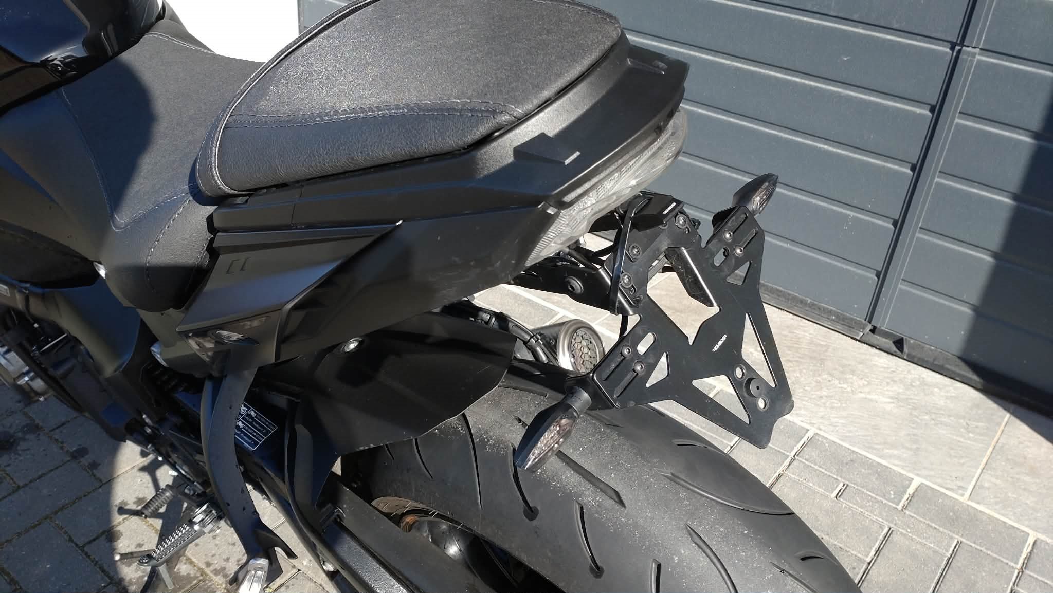 Zubehör: Sportauspuff, kurzes Heck, Lenkerendenspiegel, Mini LED-Blinker, Komfort-Sitz, Bremshebel / Kupplungshebel
